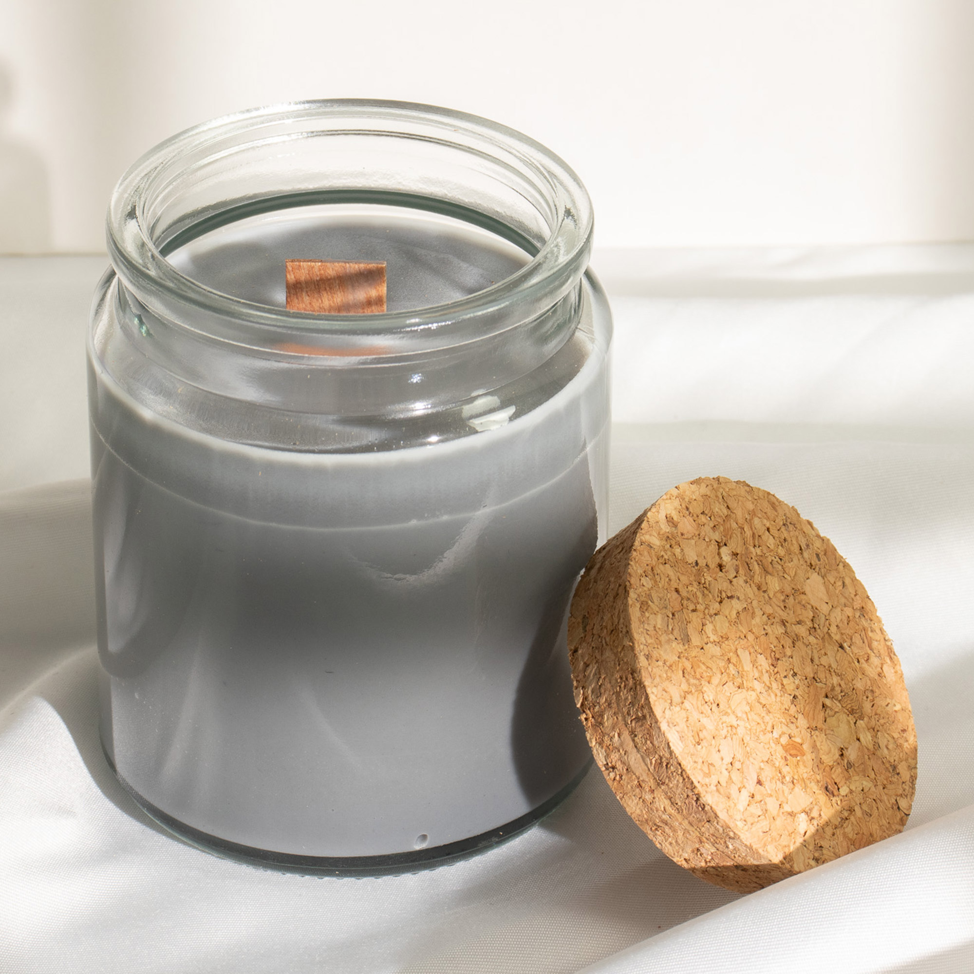 - Clear glass jar with cork lid – minimalist retail presentation