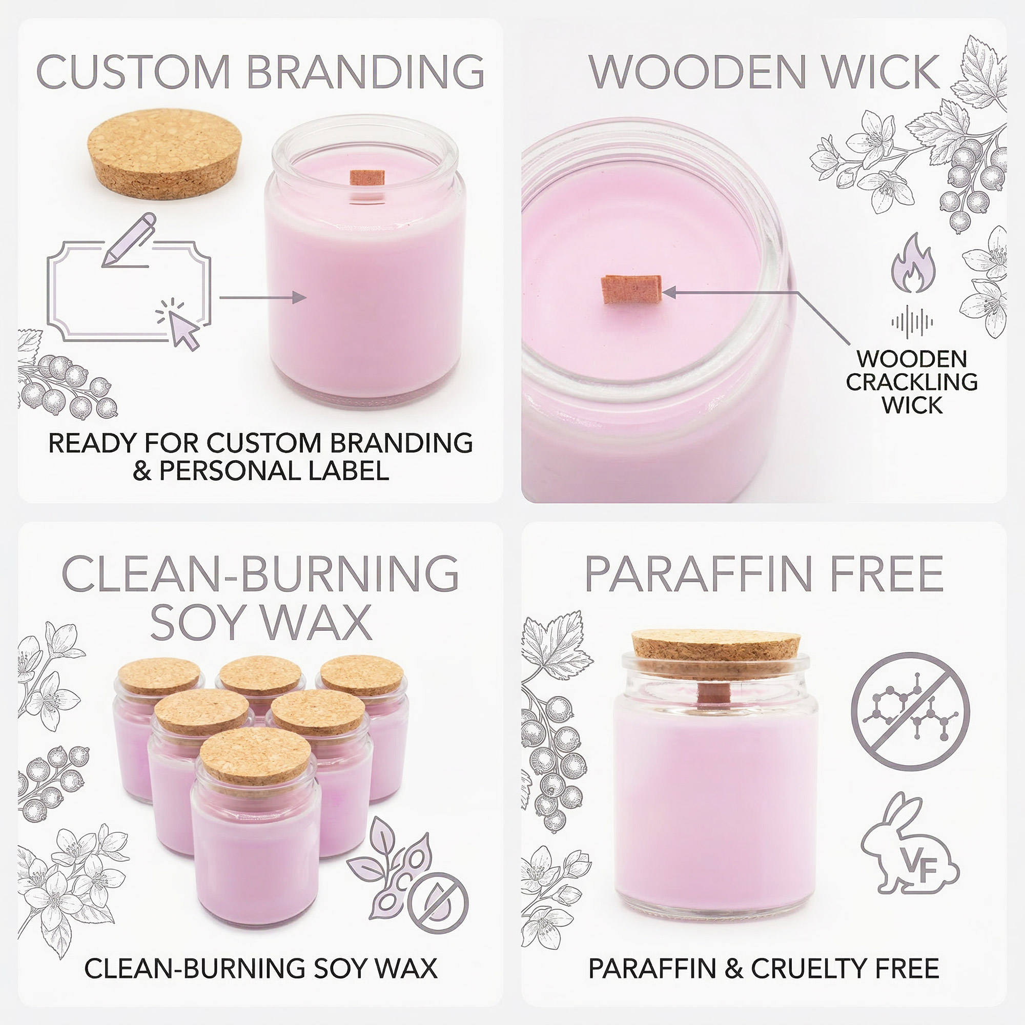Soywax, Woodwick, Glass Jar, Cork, Paper