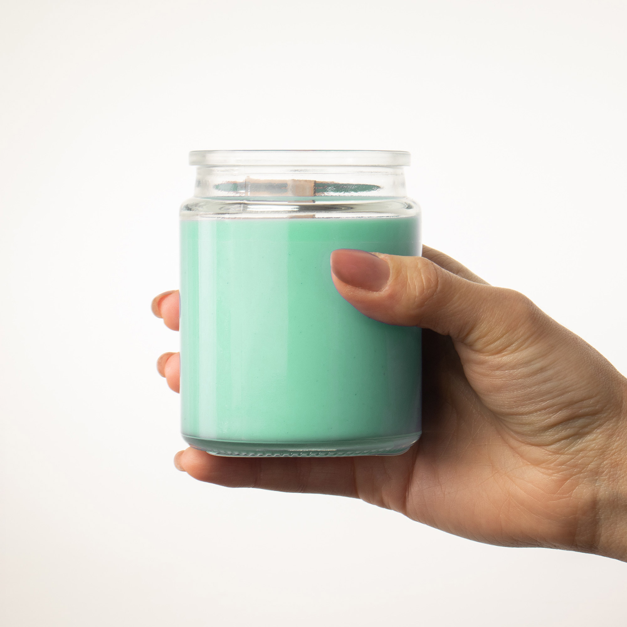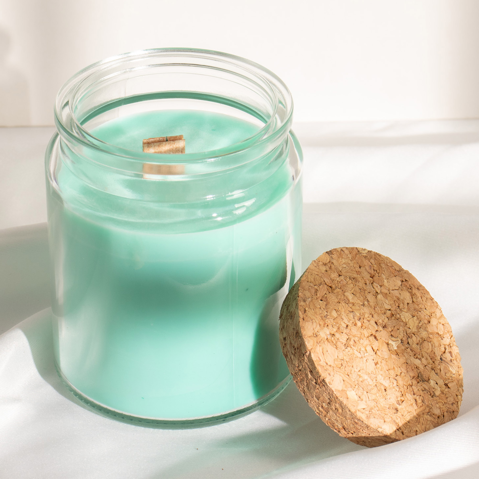 - Clear glass jar with cork lid – minimalist retail presentation