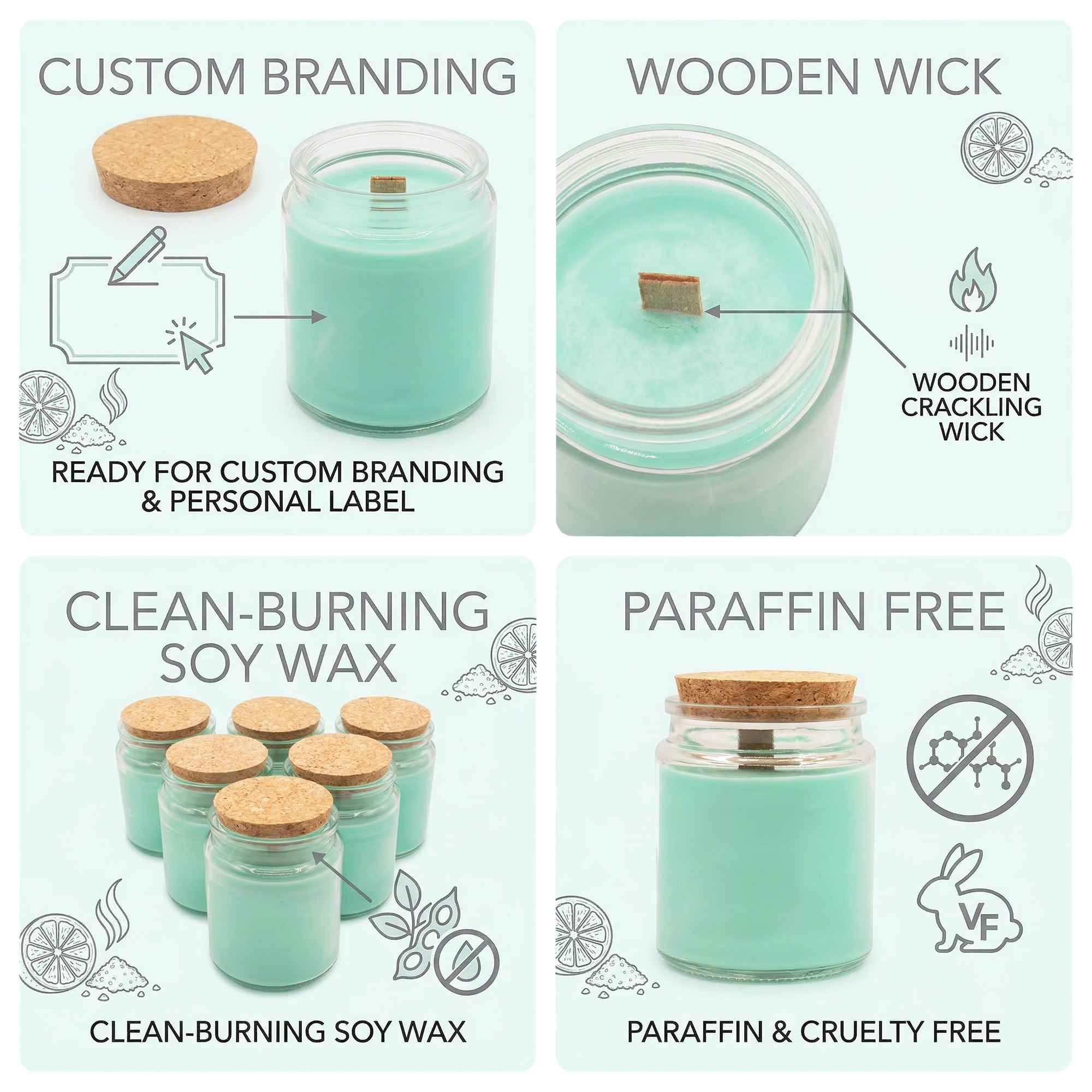 - Natural soy wax with crackling wooden wick