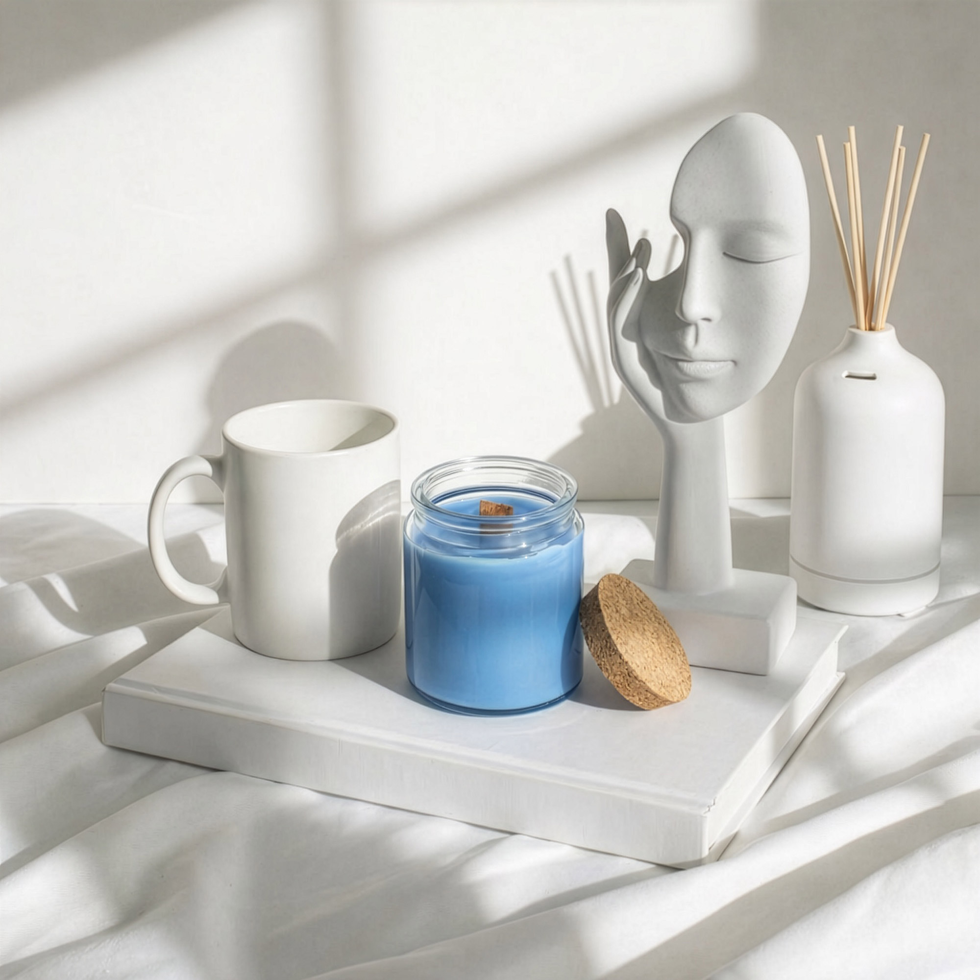 The fragrance blends earthy white sage with cool mint and subtle dry woods, creating a fresh and revitalising atmosphere. A natural wooden wick adds a gentle crackling sound, enhancing the cosy experience while the soy wax burns cleanly for approximately 26 hours.